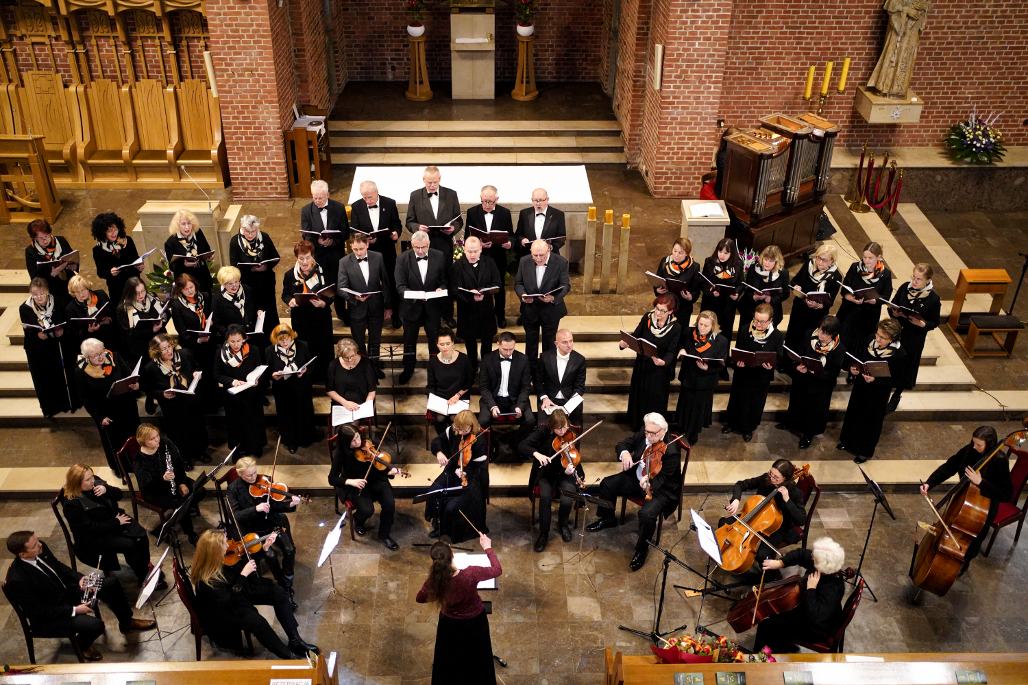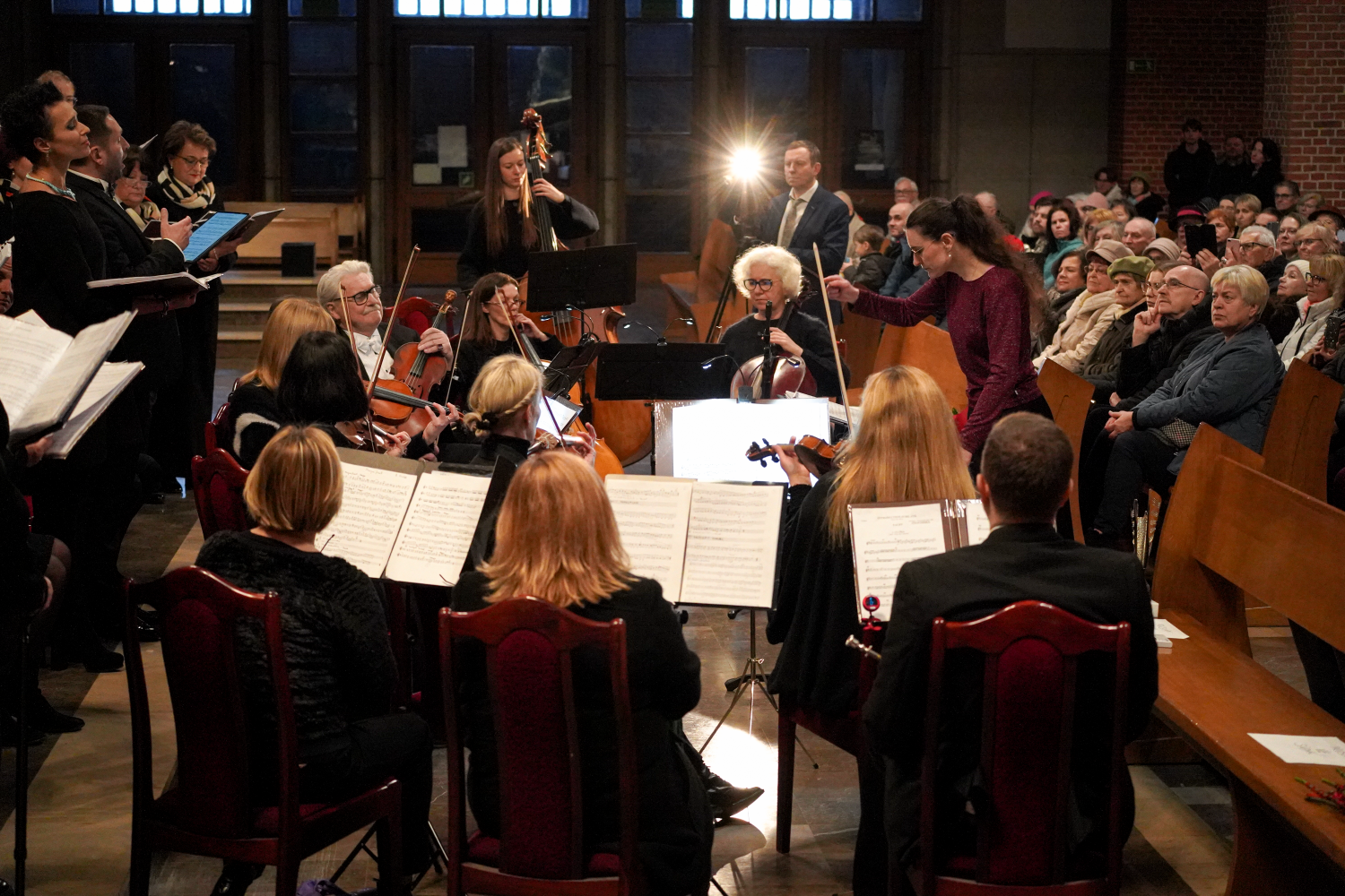 Pod dyrekcją Bogny Swiłło wystąpili: Chór Mieszany "SYMFONIA", Jubileuszowa Orkiestra Kameralna, Bożena Harasimowicz - sopran, Emilia Osowska - mezzosopran, Witalij Wydra - tenor, Tomasz Raff - bas, Renate Stivrina - organy.