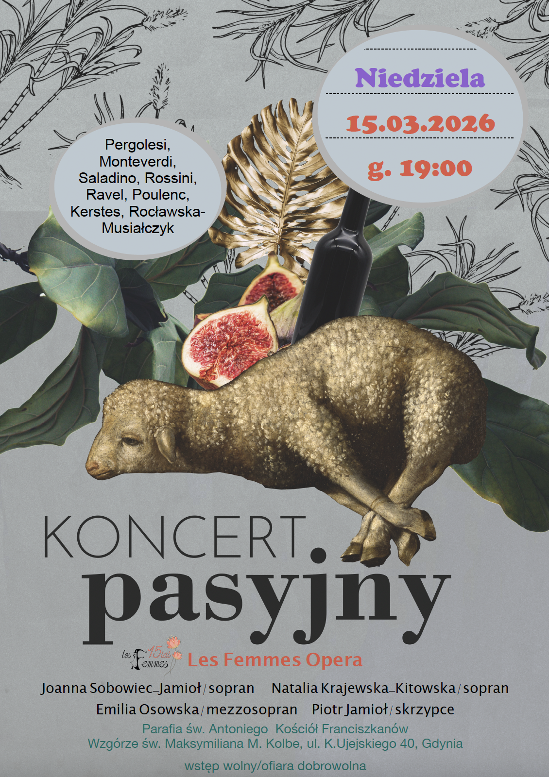 Zapraszamy 15 marca o godz. 19.00 na Koncert Pasyjny w wykonaniu zespołu Les Femmes Opera.