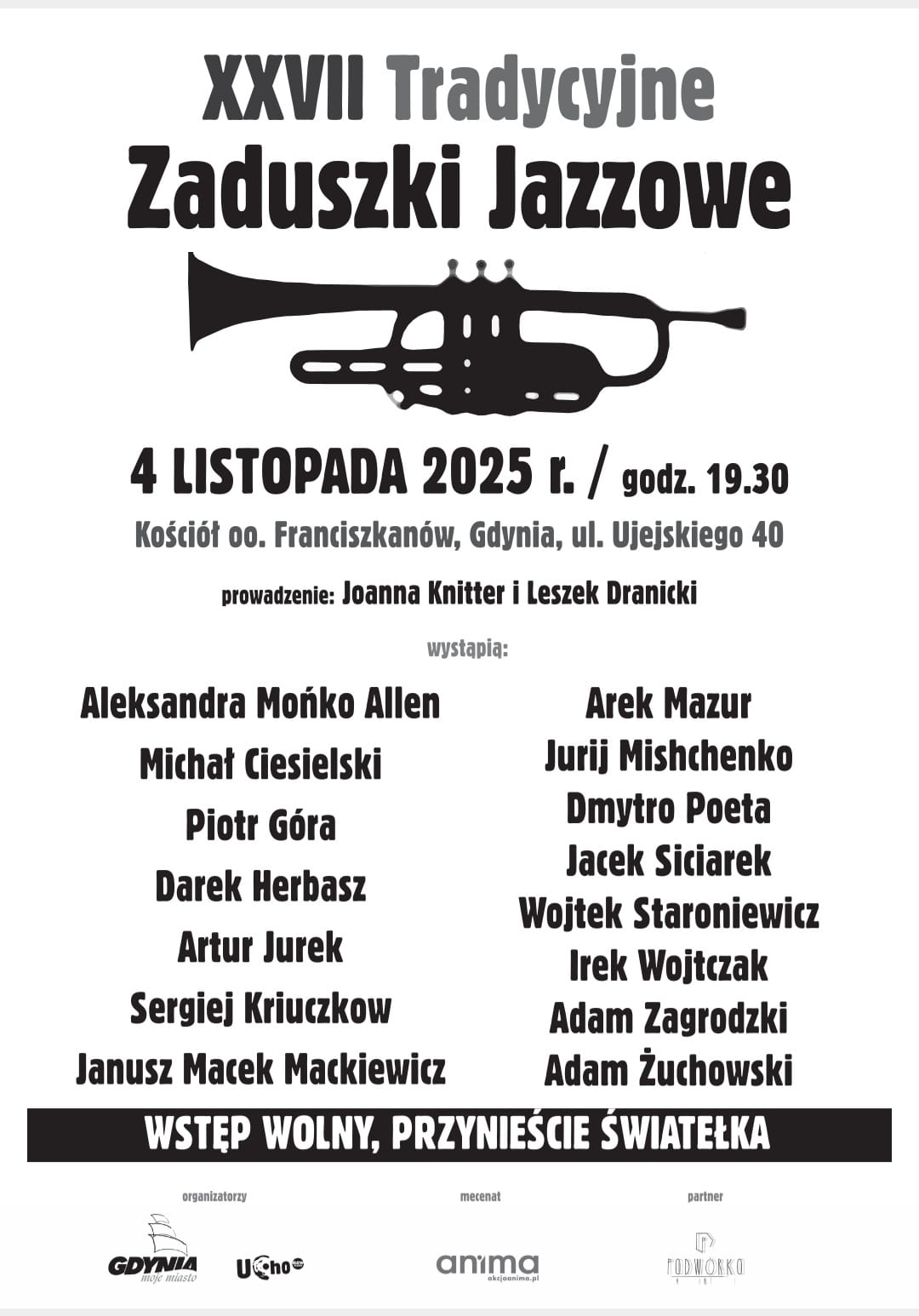 Już 4 listopada (wtorek) o godz. 19:30 zapraszamy do Kościoła oo. Franciszkanów na XXVII Tradycyjne Zaduszki Jazzowe. Po raz dwudziesty siódmy nawę kościoła wypełnią dźwięki muzyki.